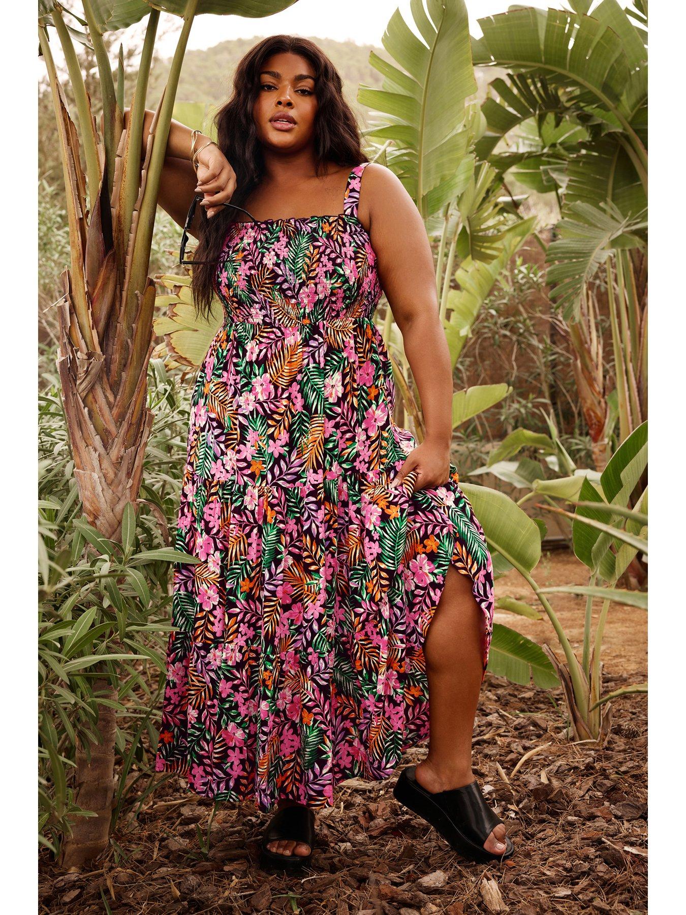 Yours Shirred Strappy Tiered Maxi Dress Black Multi Very Ireland Very well made.