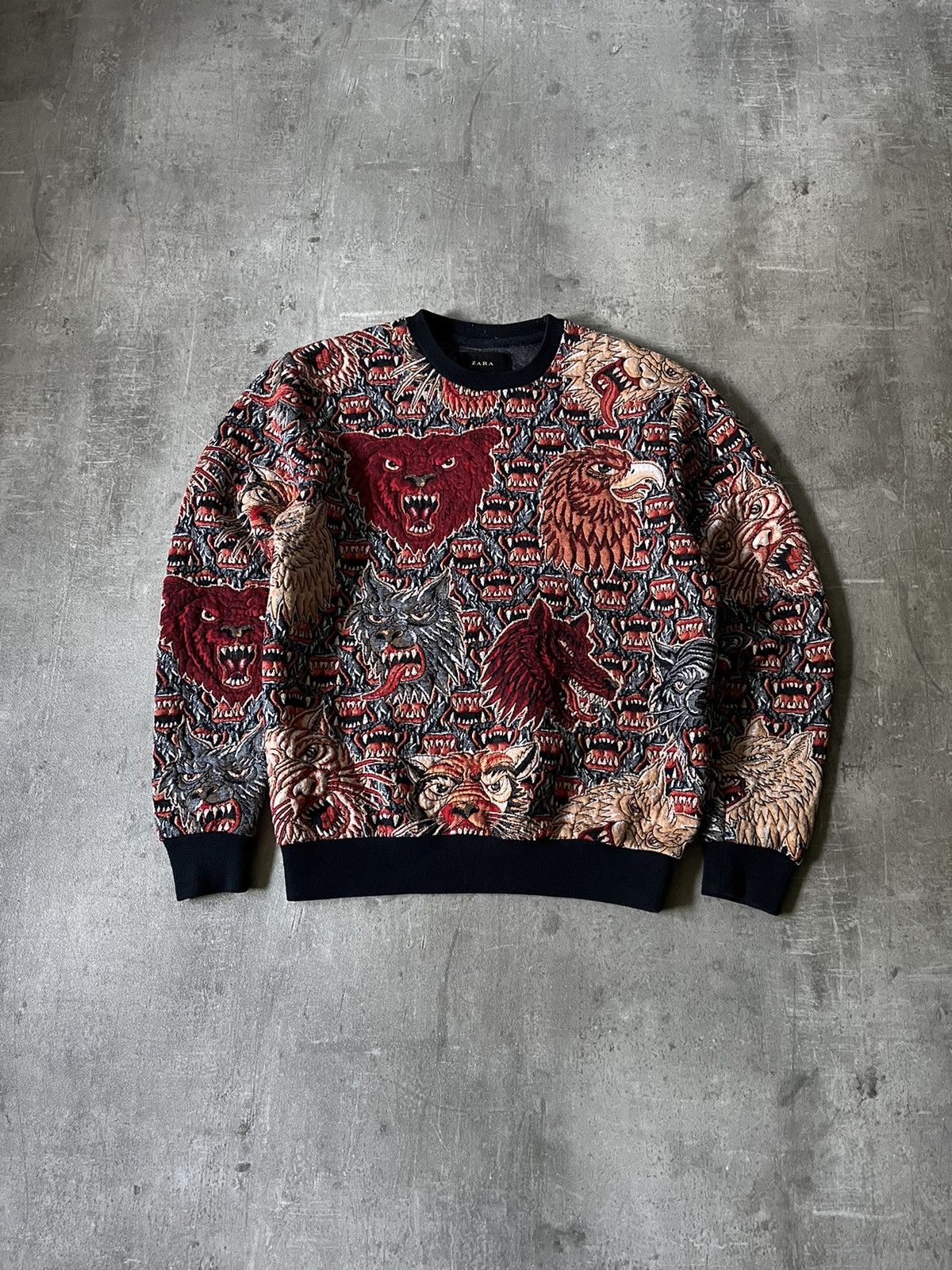 Zara Tiger Jacquard All Over Sweater Crewneck Medium eBay Very well made.