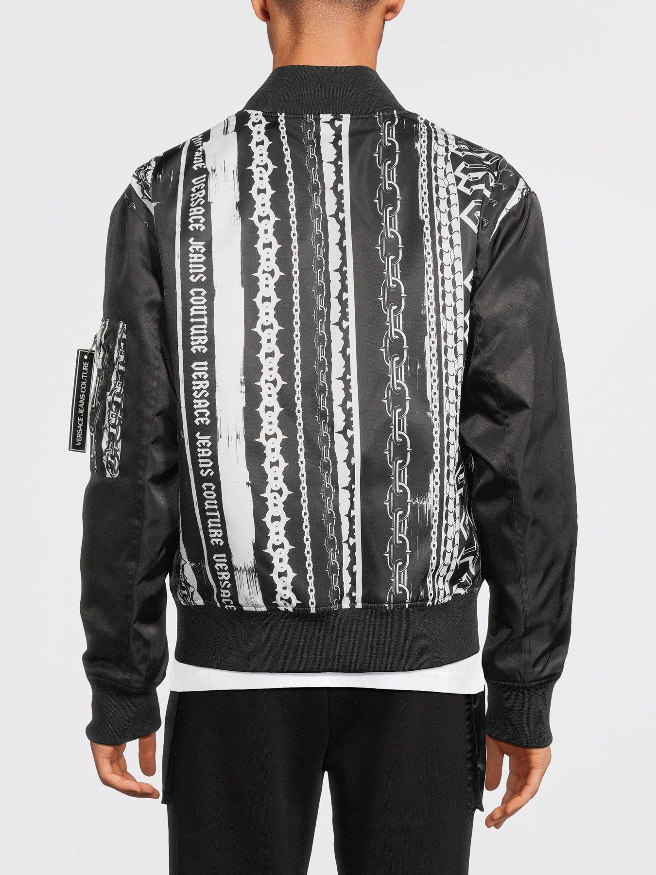 Versace Jeans Couture Back Stripes Print Nylon Bomber Jacket Black white Very well made.