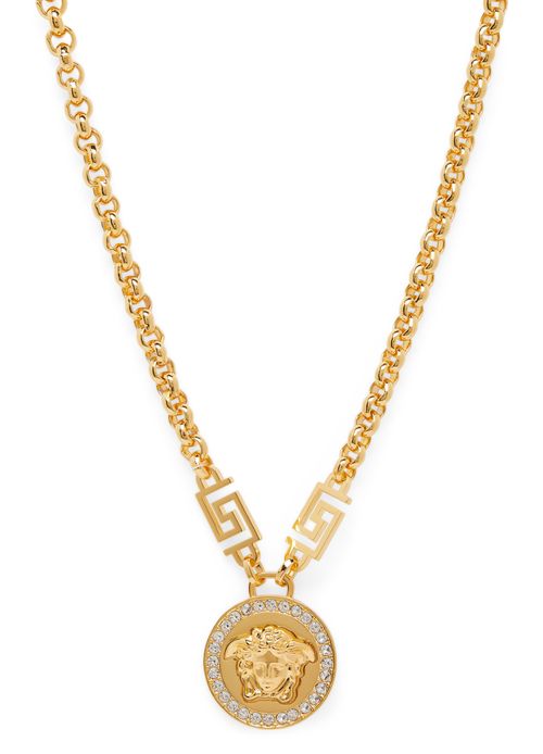 Versace Medusa crystal embellished necklace women Brass One Size Gold Very well made.