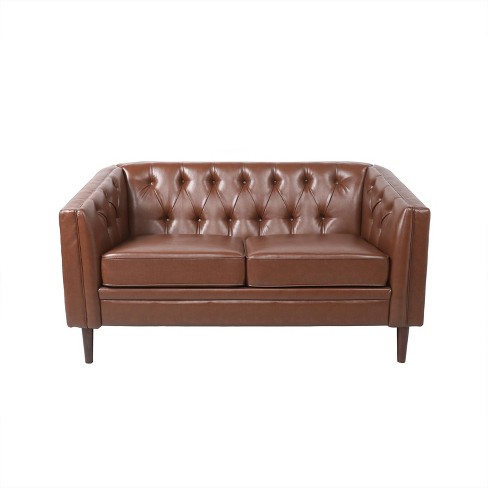 Christopher Knight Home Cantrell Faux Leather Tufted Loveseat cognac Brown Espresso Very well made.