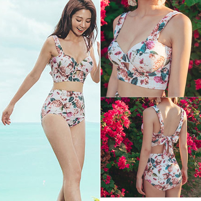 Korean Fashion High Waist Floral Bikini Two Piece Swimsuit Summer Women Beach Wear Plus Size Push Up Shopee Philippines Very well made.