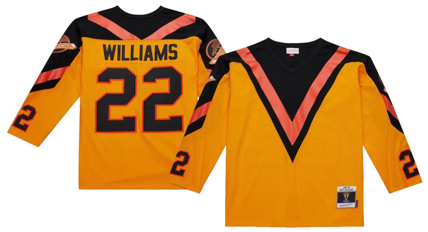 Mitchell Ness Men s Dave Williams Gold Vancouver Canucks 1981 82 Power Play Player Jersey Size Small Very well made.