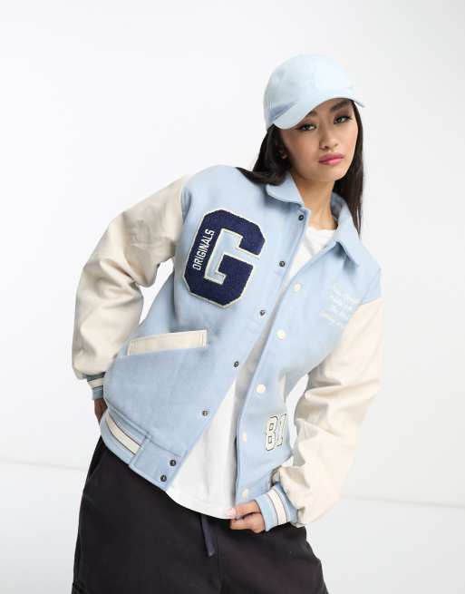 Guess Originals contrast sleeve varsity jacket in light blue Very well made.