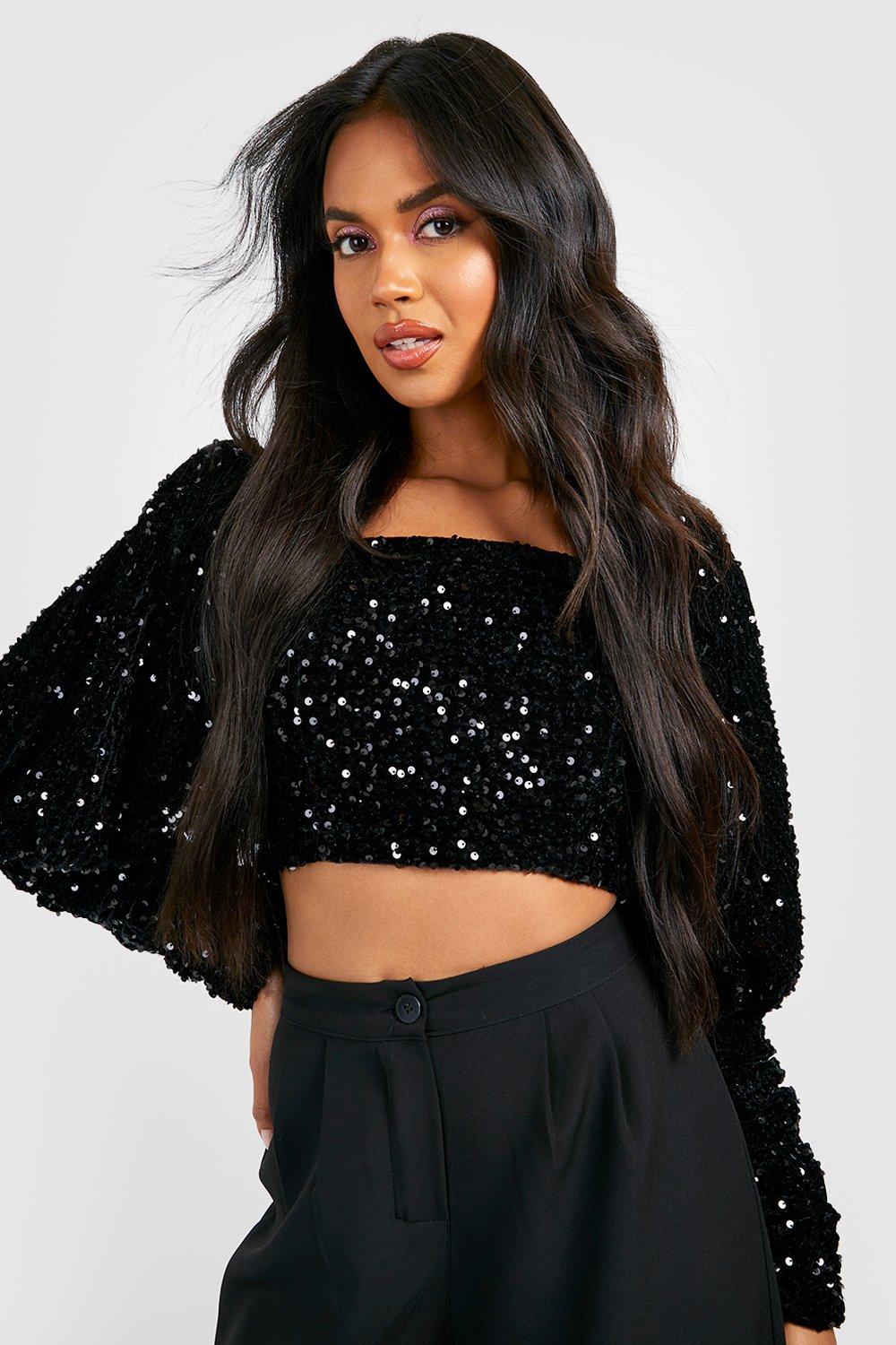 Black Velvet Sequin Volume Sleeve Top Very well made.