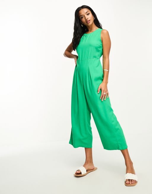 Vero Moda Curve linen touch tie back jumpsuit with pleat front wide leg in green ASOS Very well made.