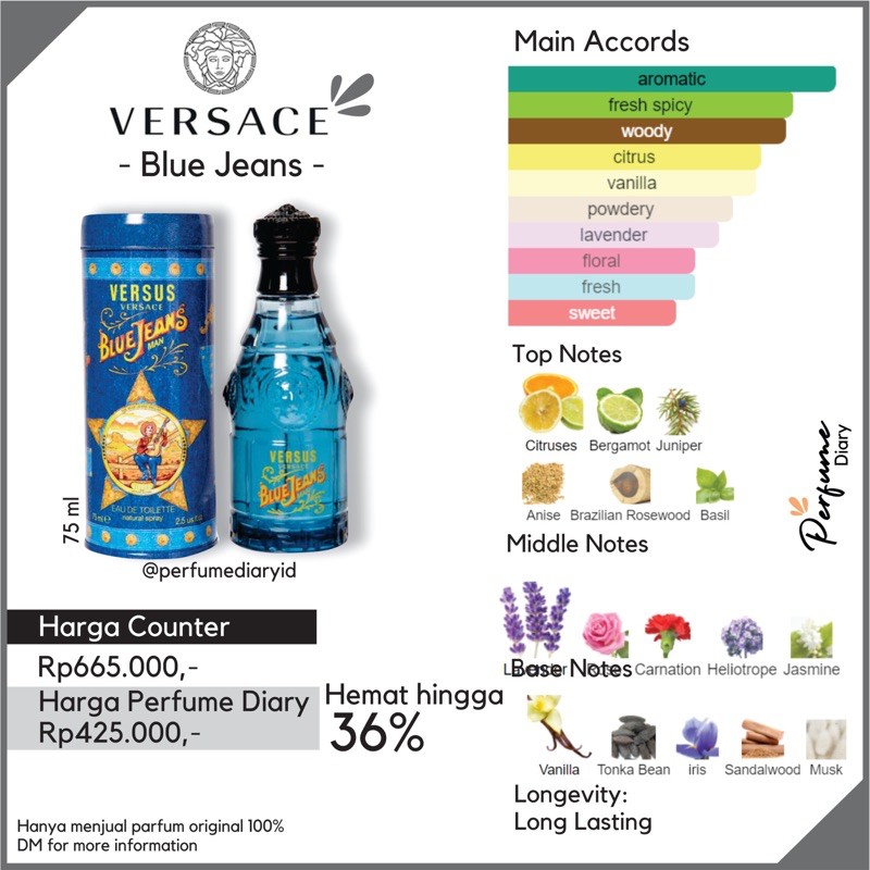 Versace Blue Jeans Blue Jeans is a fragrance one always goes back to. A classic masculine fragrance with woodsy citrusy notes with a spicy heart and a warm drydown. Dm us Very well made.