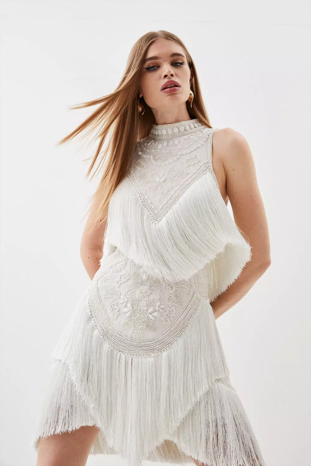 Fringe And Beaded Halter Neck Mini Dress Karen Millen Very well made.