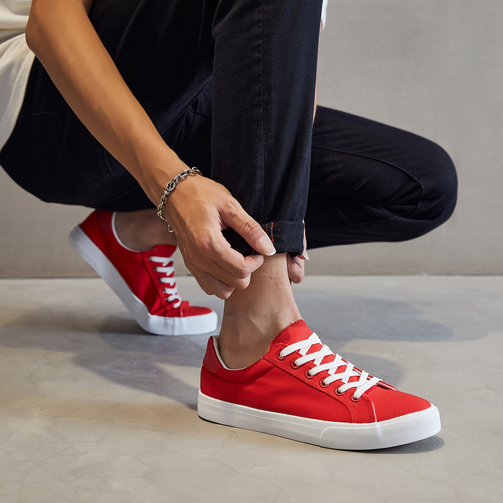 Wholesale Fashion Unisex Men Flat Tennis Shoes Sneakers Custom Logo Red Canvas Shoes For Men New Style BestSuppliers Very well made.