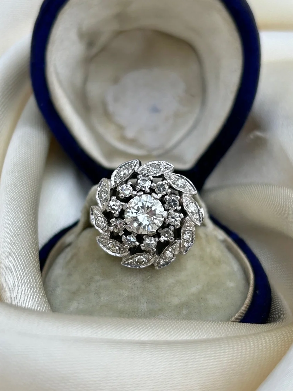 Large Antique Platinum Diamond Flower Cluster Ring Gembank1973 Very well made.