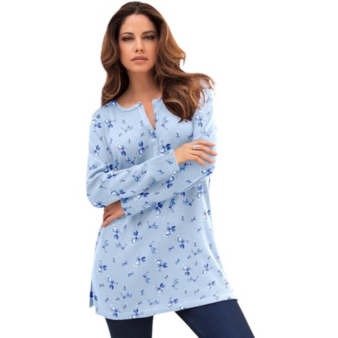 Roaman s Women s Plus Size Thermal Henley Tunic 1x Pale Blue Pretty Floral Target Very well made.