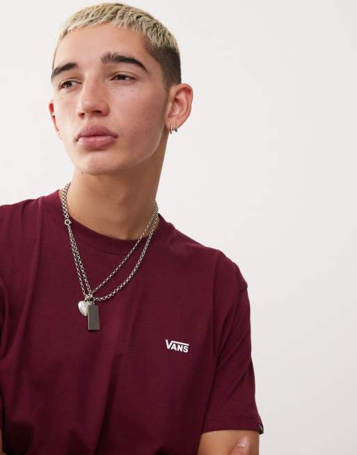 Vans Bordowa koszulka z logo po lewej stronie klatki piersiowej Very well made.