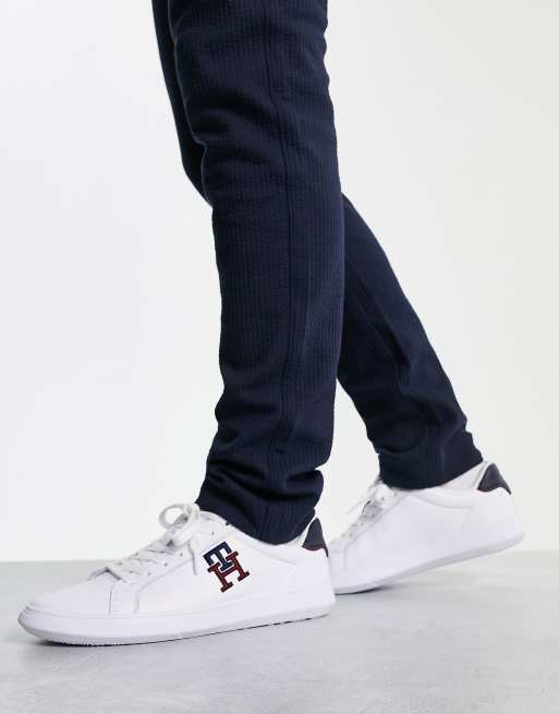Tommy Hilfiger cupsole leather monogram trainer in white Very well made.