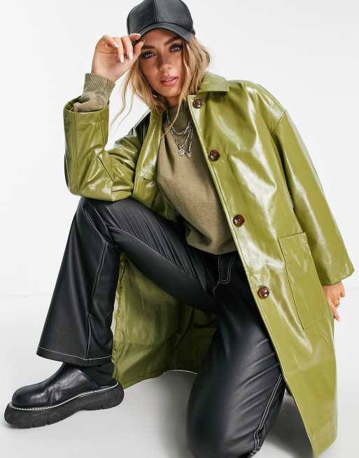 Topshop vinyl long coat in khaki Very well made.
