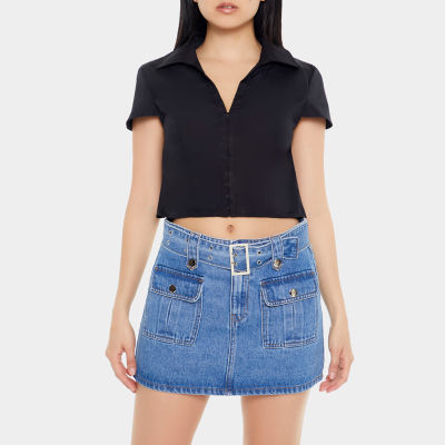 Forever 21 Juniors Cropped Woven Womens Short Sleeve Button Down Shirt Very well made.