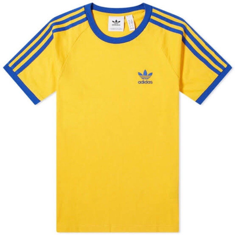 Adidas Originals 3 Stripes T Shirt Royal Blue Golden Yellow Very well made.