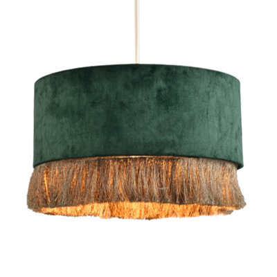 Modern Forest Green Soft Velvet Circular Pendant Light Shade with Gold Tassels Very well made.