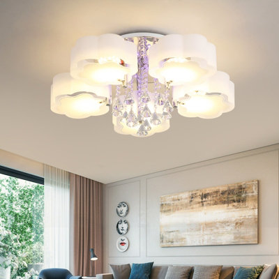 Livingandhome 5 Lights Floral Crystal LED Ceiling Light Fixture with Remote Dimmable Very well made.