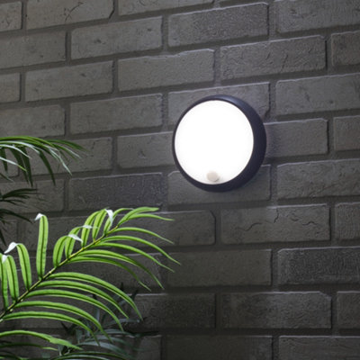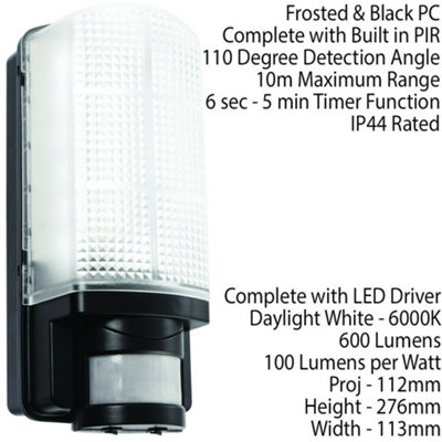 BLACK IP44 Outdoor Wall Bulkhead Light 10m PIR Motion Sensor 6W Daylight LED Very well made.