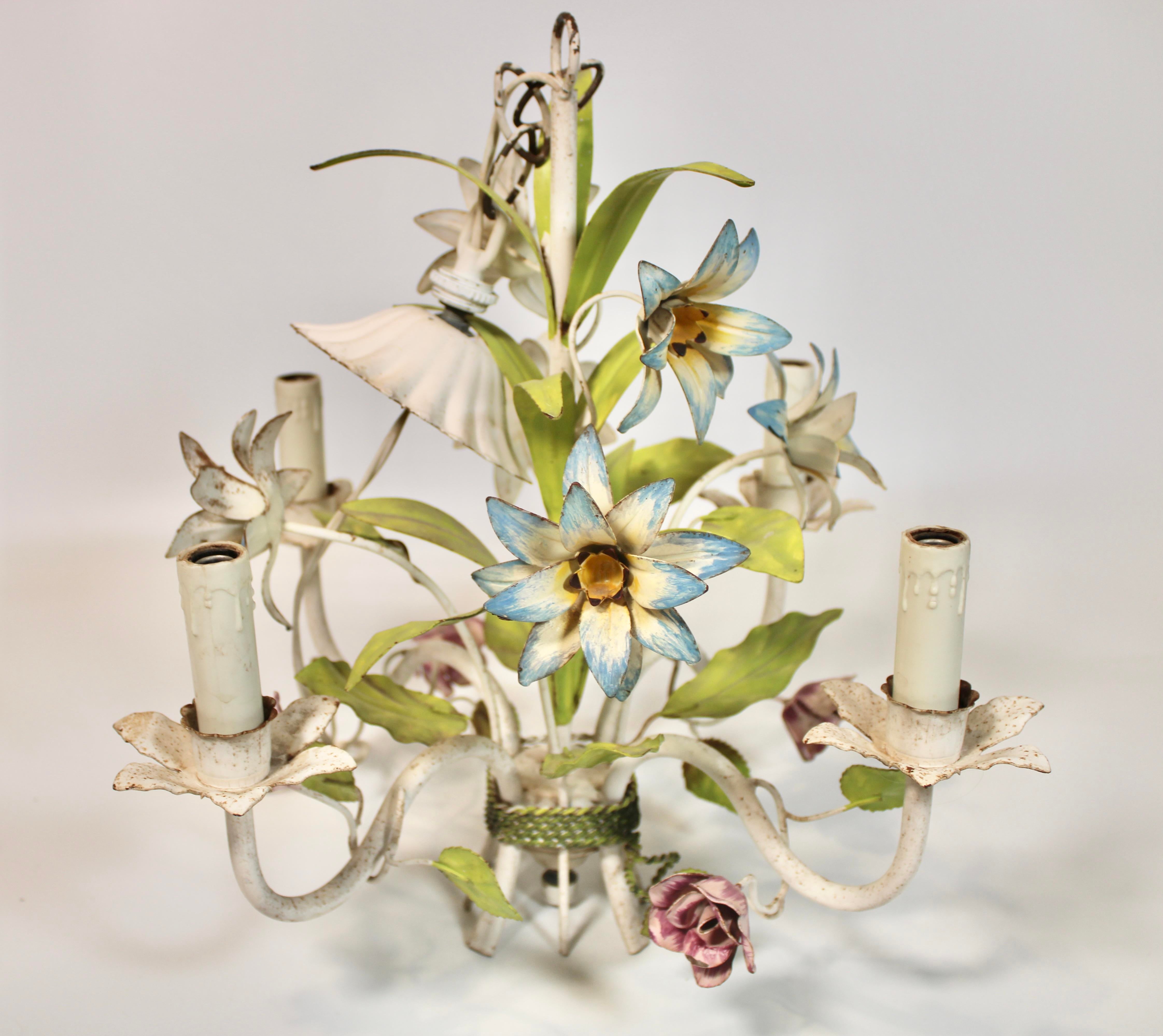 Vintage Italian Tole Flower Chandelier Very well made.