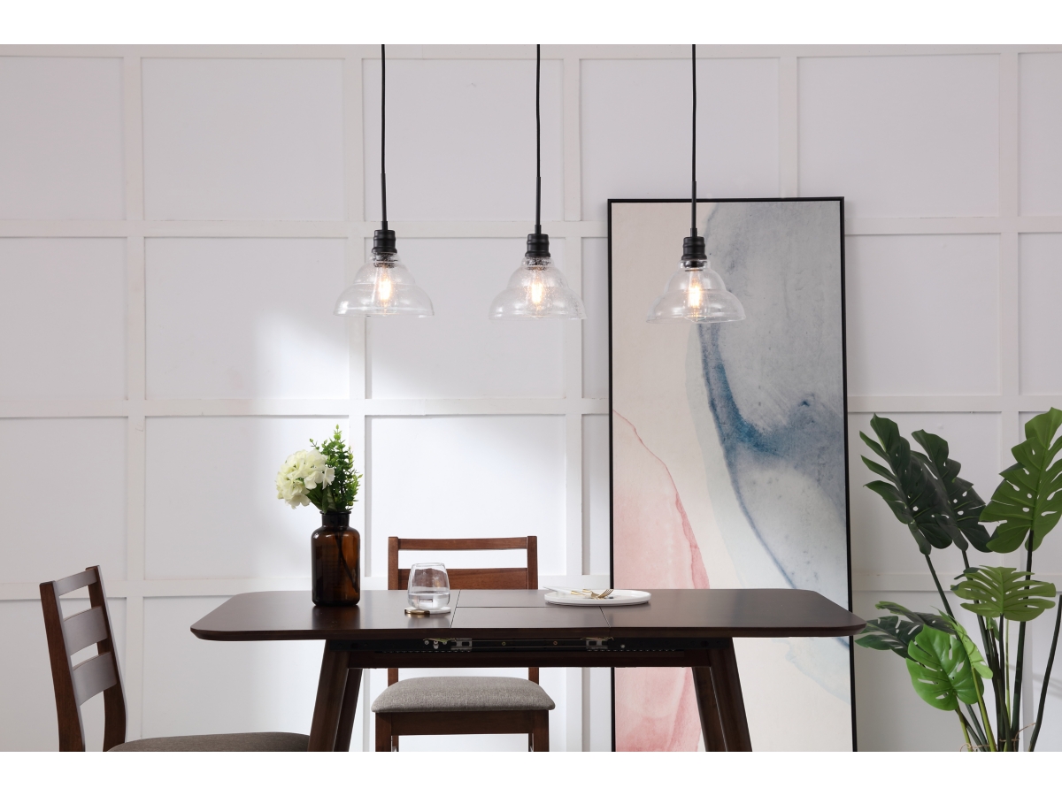Living District Clive 3 Light Black And Clear Seeded Glass Pendant Ashley Very well made.