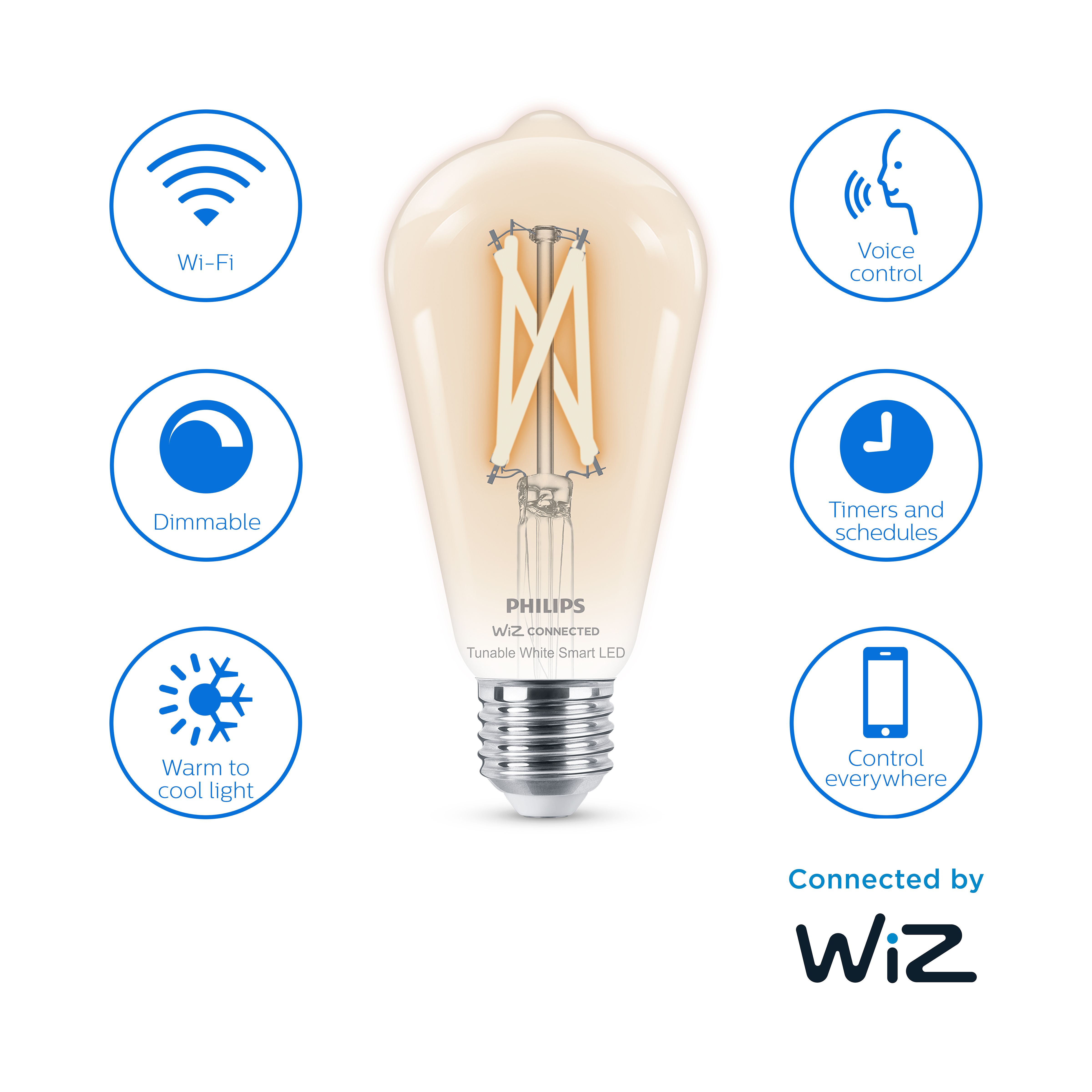 Philips WiZ E27 60W LED Cool white warm white ST64 Dimmable Light bulb Very well made.