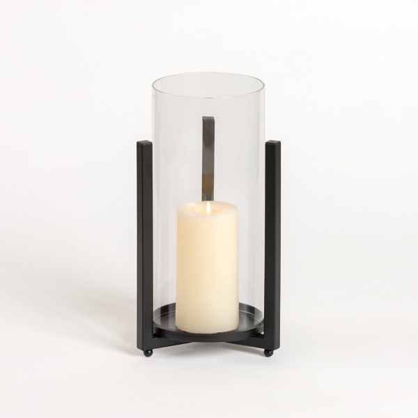 Glass Hurricane with Black Metal Stand 9.5 in Very well made.