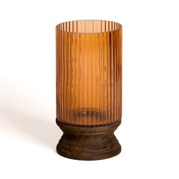 Amber Glass and Wood Hurricane 13 in Very well made.