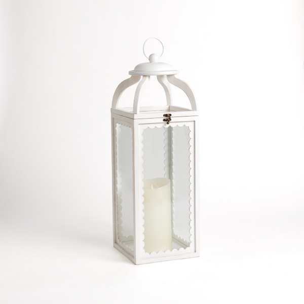 White Wood Scalloped Hurricane Lantern 26 in Very well made.