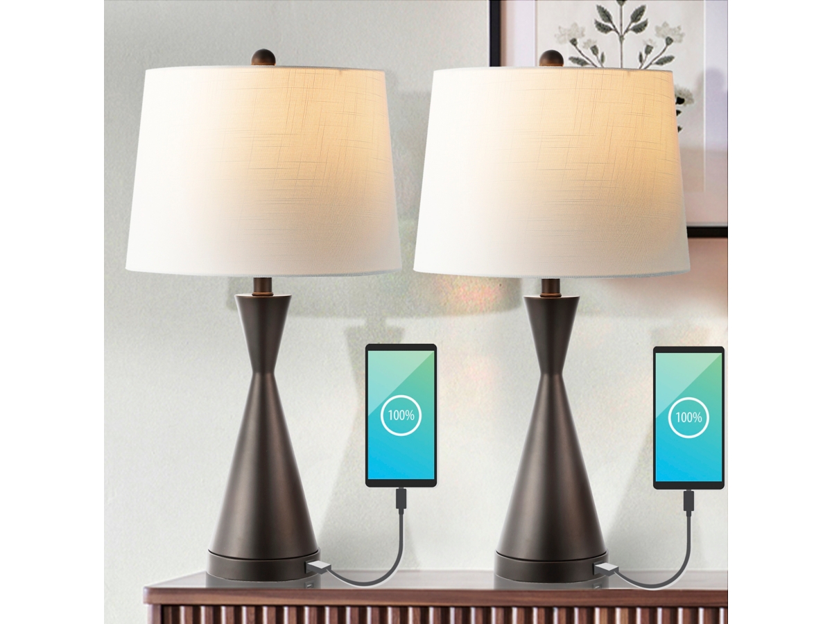 27.5 in Farmhouse Table Lamps with USB C A Ports Living Room Lamps Set of 2 Oil Rubbed Bronze End Lamp for Bedroom Very well made.