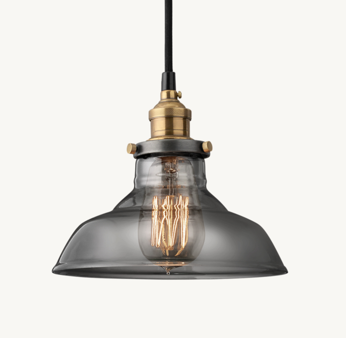 20th C. Factory Filament Smoke Glass Barn Pendant RH Very well made.