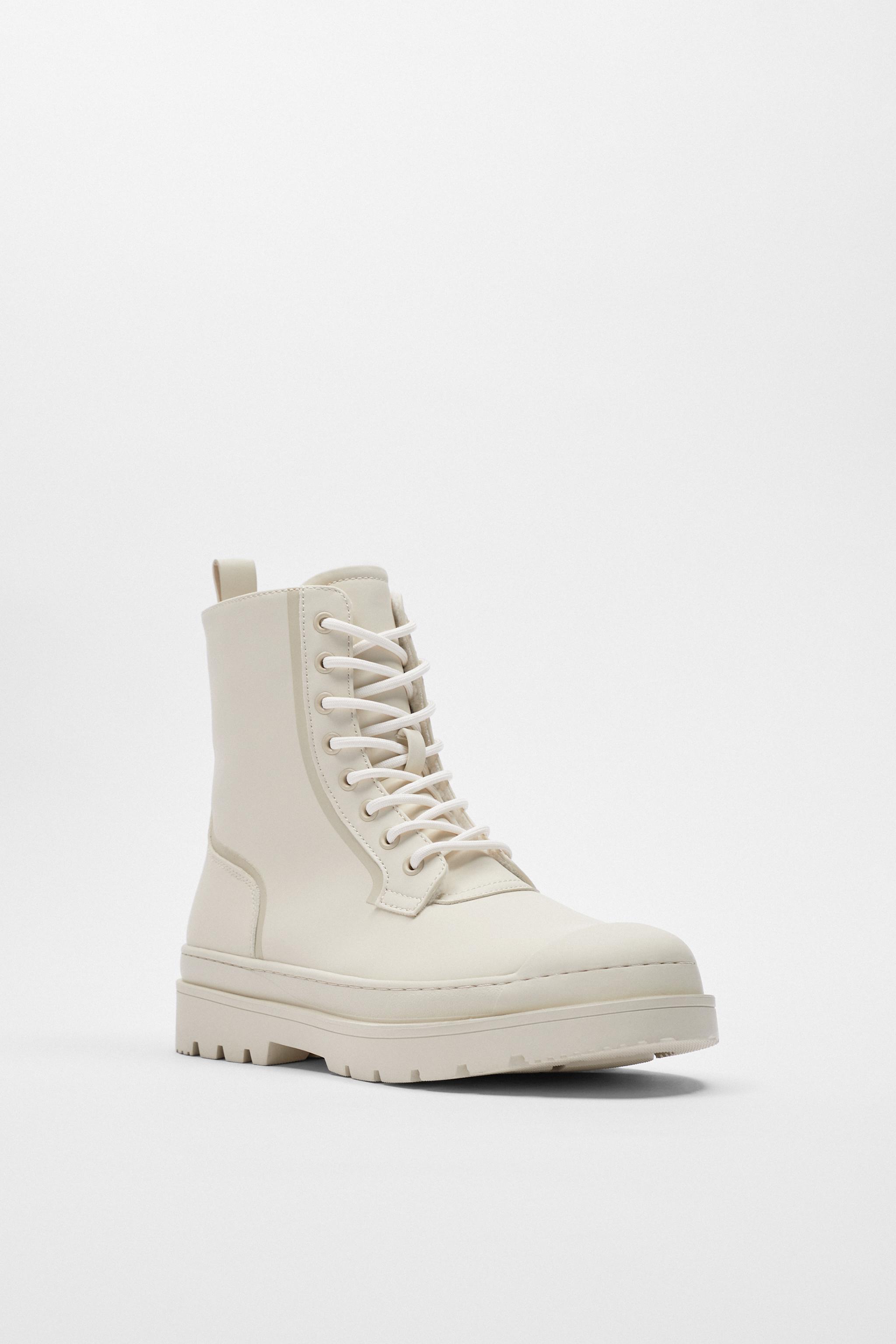 Zara Flat Leather Lace Up Ankle Boots With Track Ecru White 3105 510 Size 7.5 eBay Very well made.