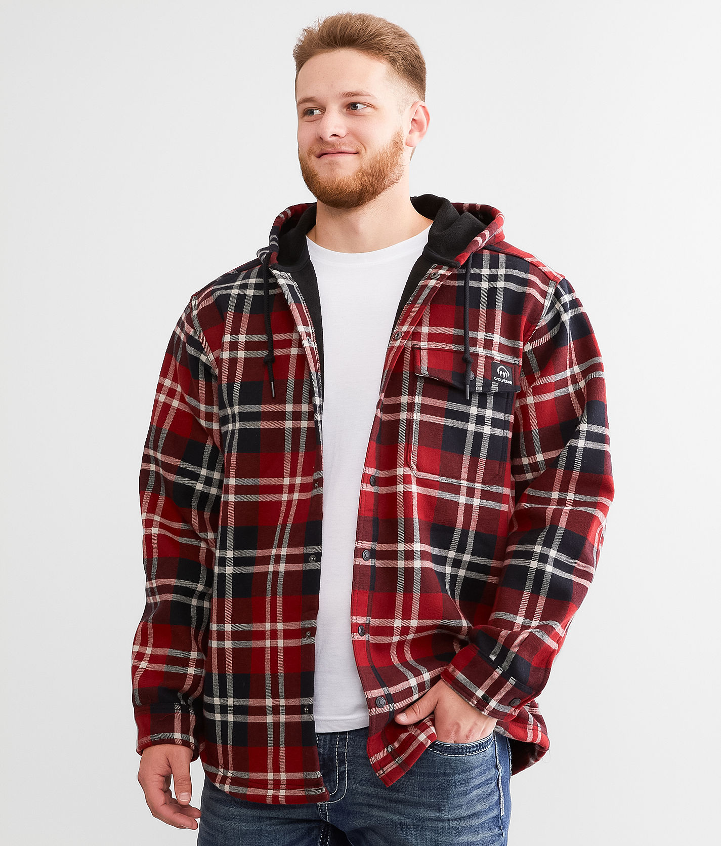 Wolverine Bucksaw Flannel Hooded Shacket Men s Coats Jackets in Garnet Plaid Buckle Very well made.