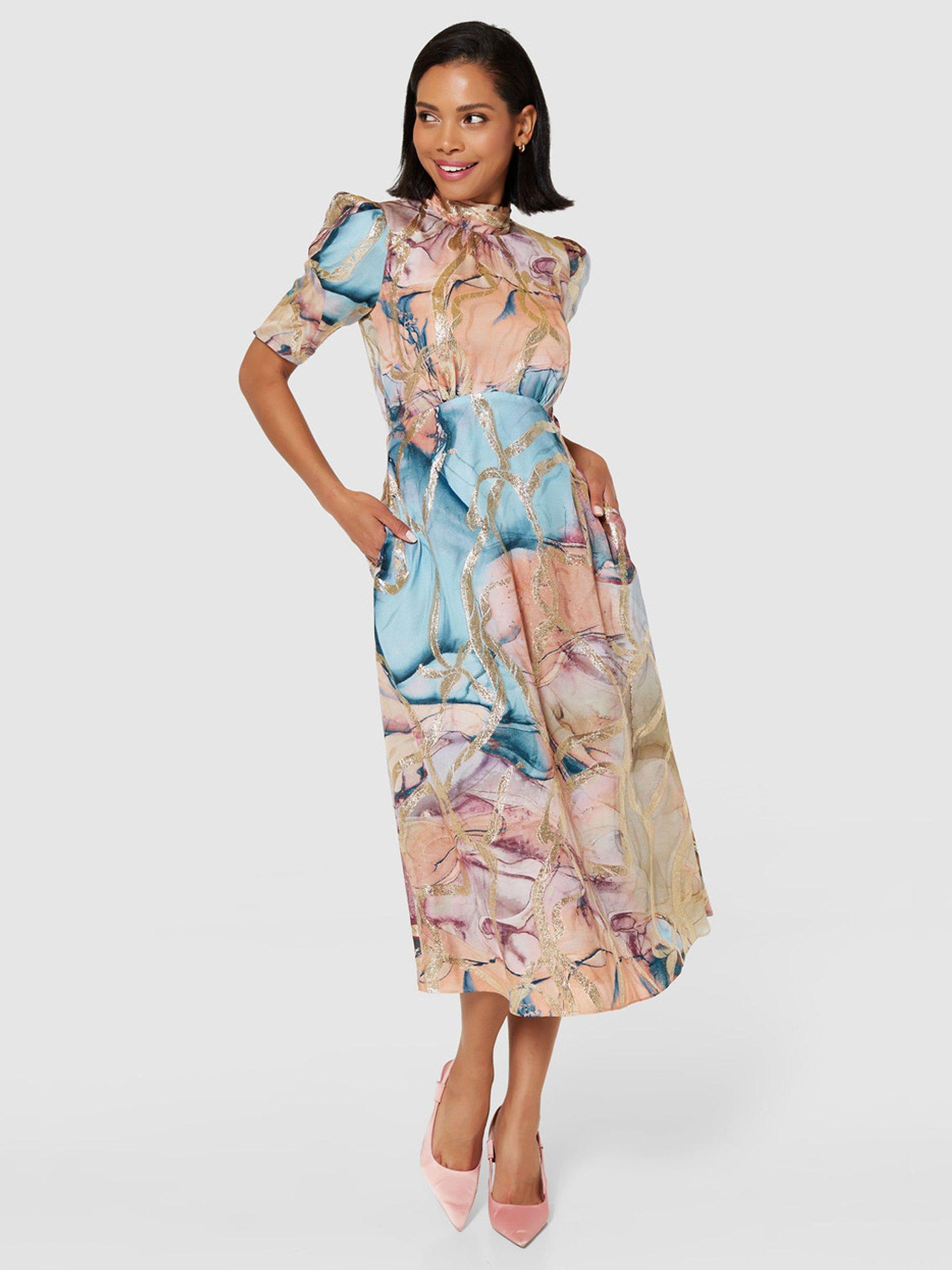 Closet London A Line Tie Back Midi Dress Blush Multi Very well made.
