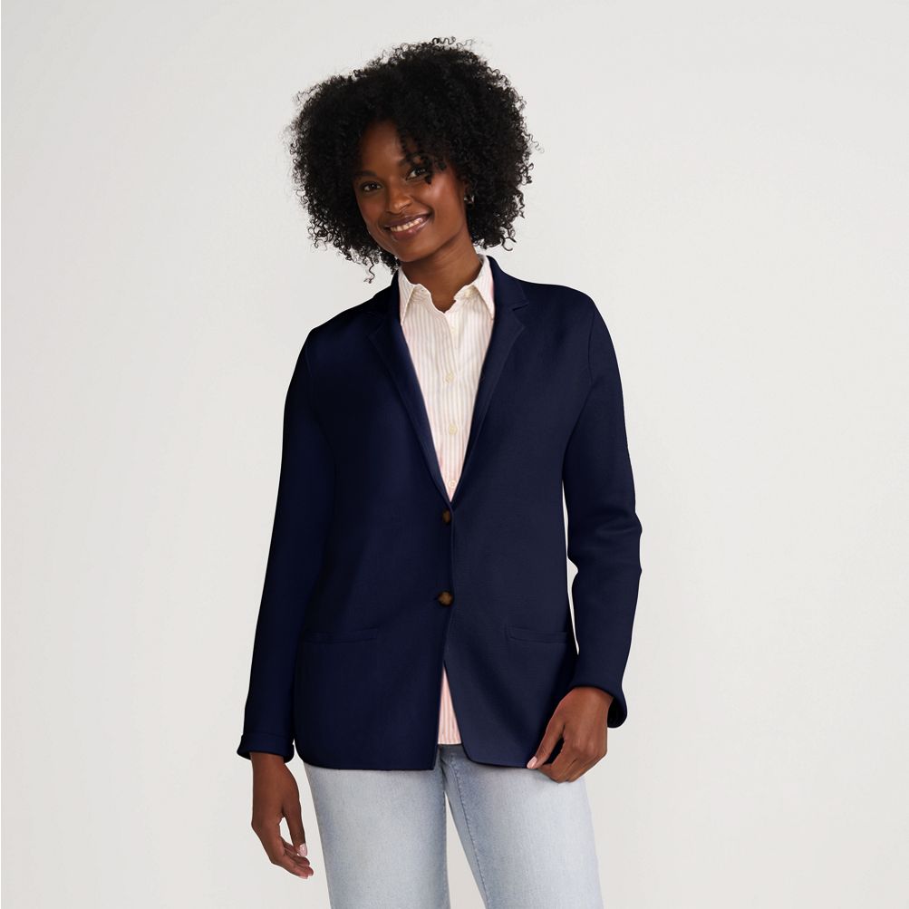 Women s Fine Gauge Cotton Button Front Blazer Sweater Lands End Very well made.