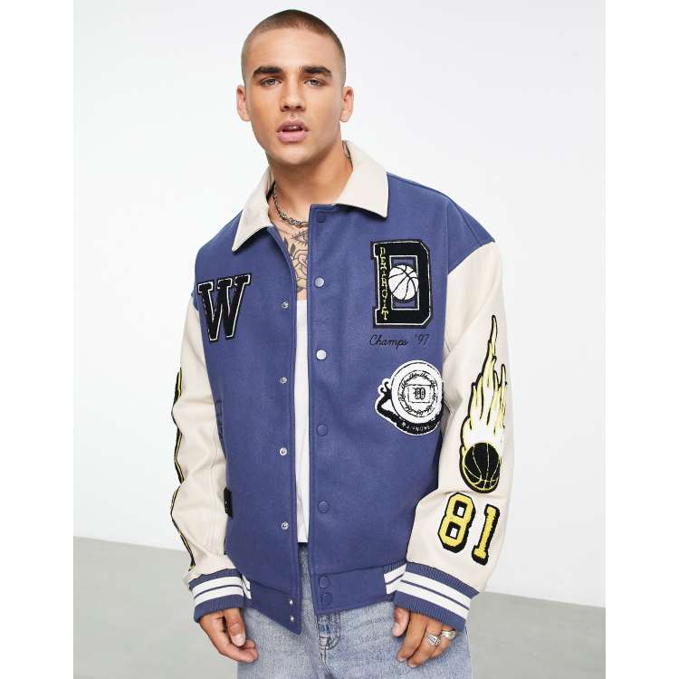 Topman varsity jacket with city embroidery in blue Very well made.