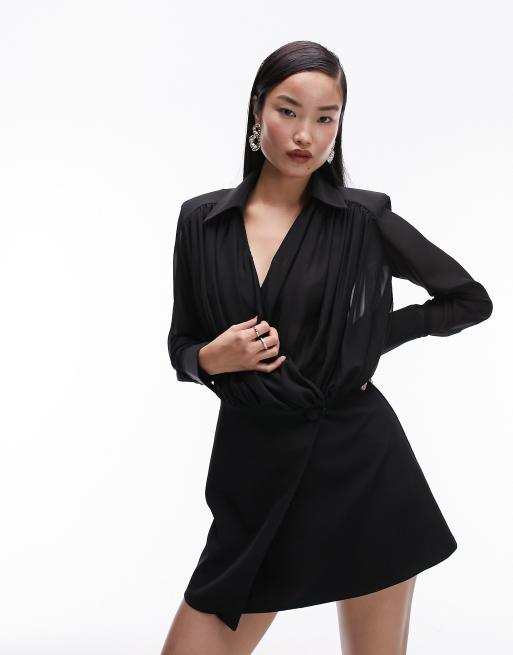 Topshop sheer shirt wrap dress in black Very well made.