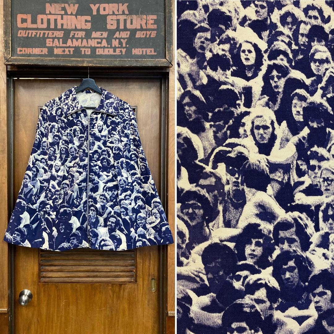 Vintage 1960 s Woodstock Audience Festival PhotoPrint Pop Art Jacket Cape Vintage on Hollywood Hollywood Los Angeles CA Very well made.