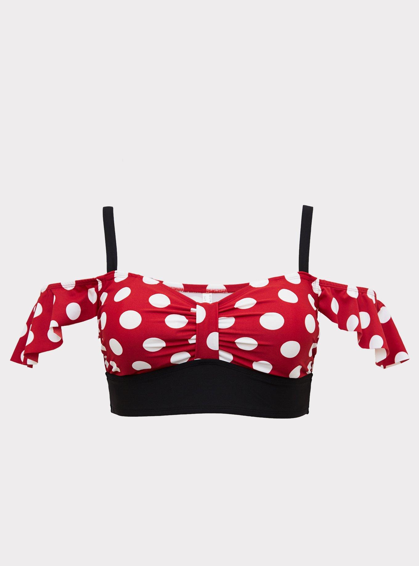 Plus Size Disney Minnie Mouse Red Polka Dot Cold Shoulder Wireless Bikini Top Torrid Very well made.