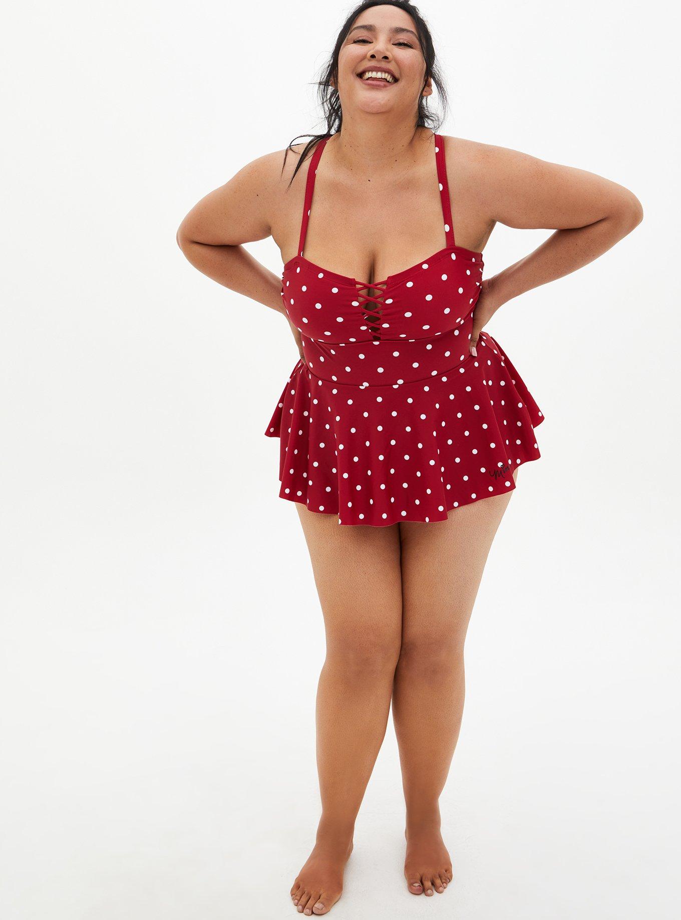 Plus Size Disney Minnie Mouse Red Retro Lattice Front Peplum One Piece Swimsuit Torrid Very well made.