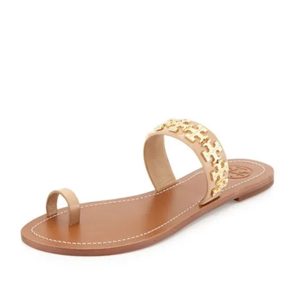 Tory Burch Val Patent Toe Ring Sandal Camellia Pink Gold Very well made.