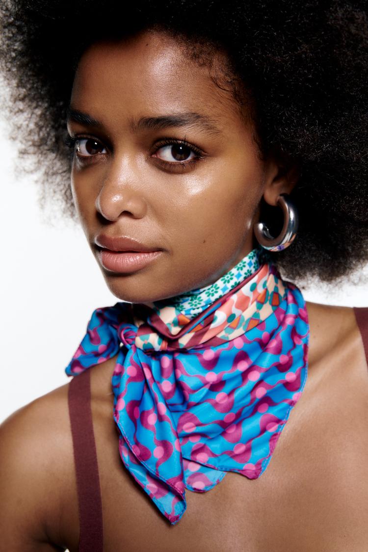 PRINTED SATIN SCARF Multicoloured ZARA Spain Very well made.