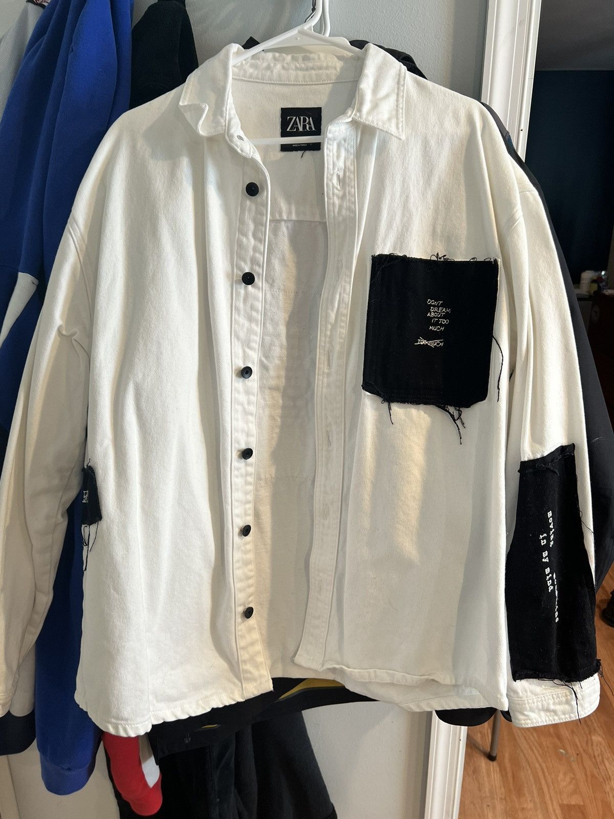 Streetwear Vintage Zara White Black Over React Zara Denim Jacket Grailed Very well made.