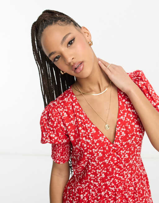Influence button down tiered midi dress in red floral print Very well made.