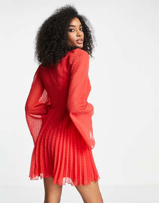 ASOS DESIGN textured pleated wrap mini dress in bright red ASOS Very well made.