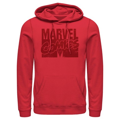 Men s Marvel Distressed Red Comics Logo Pull Over Hoodie Red Medium Very well made.