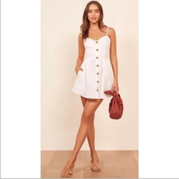 Reformation Dresses Reformation Velma White Button Dress 4 Poshmark Very well made.