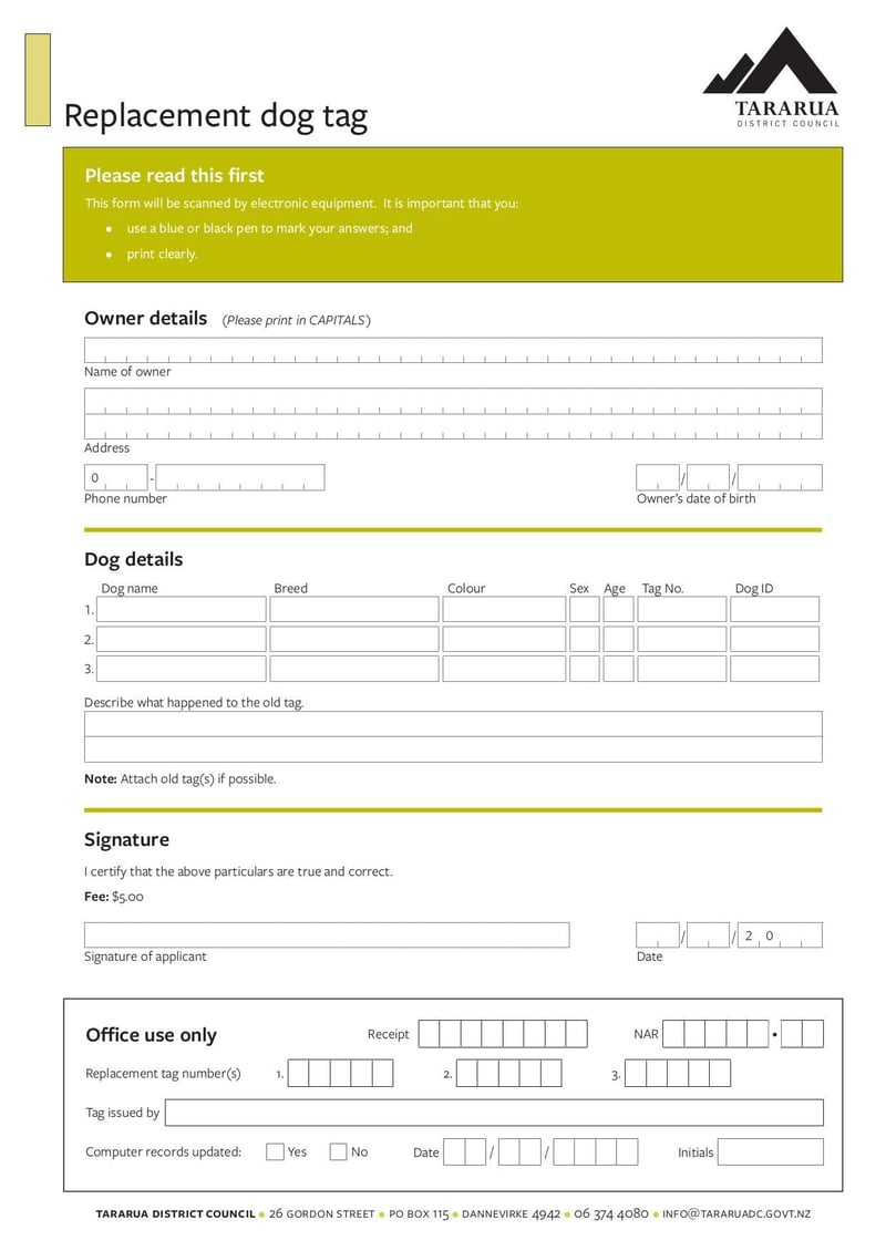 Replacement Dog Tag Form Fill and sign online with Lumin Very well made.