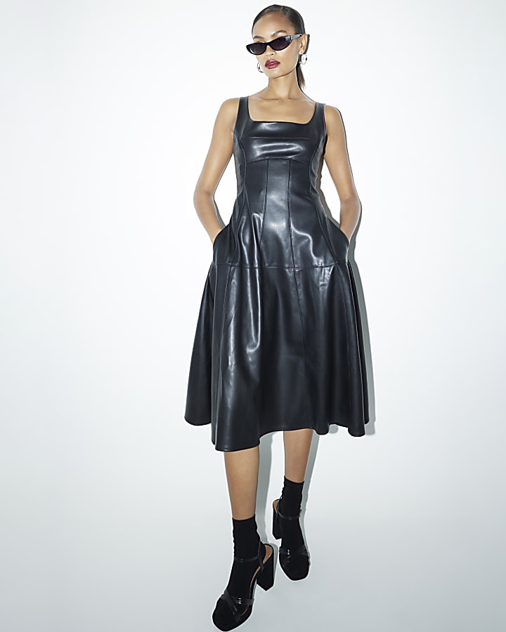 Black Faux Leather Midi Dress River Island Very well made.