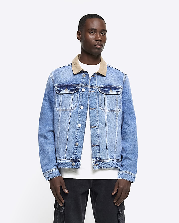 Blue regular corduroy collar denim jacket River Island Very well made.
